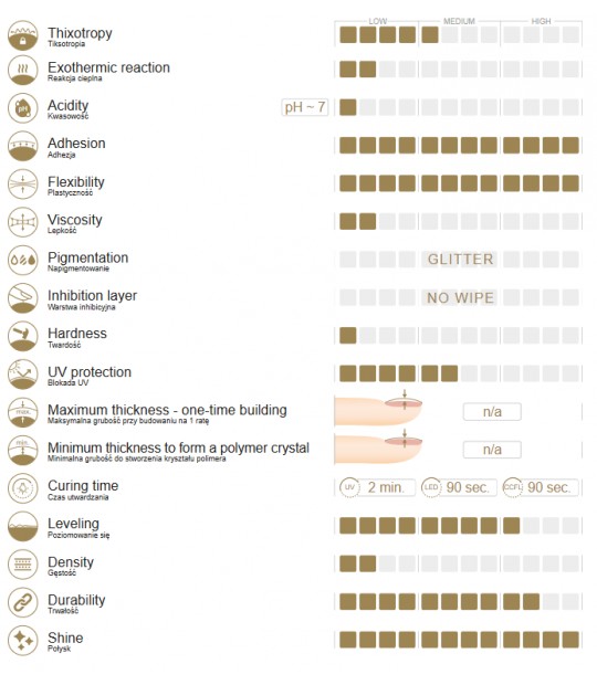 - Izdelek je zelo fleksibilen in po polimerizaciji zelo gumijast in prilagodljiv vsakemu nohtu.