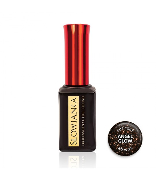 Angel Glow Top Coat No Wipe je zaključni gel top brez disperzije, ki nohtom ne doda klasične barve, temveč nežen, zlato, roza, bakren sijoč angel glow učinek. Gre za prosojen top coat, obogaten z izjemno drobnimi svetlobnimi delci, ki ustvarijo mehak, mlečno-biserni sijaj z rahlim kameleon odsevom.
